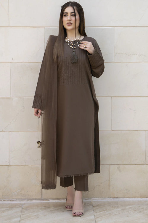 Aabpara Simply Warm Linen 3pc Ready to Wear with Dyed Net Dupatta SWA6