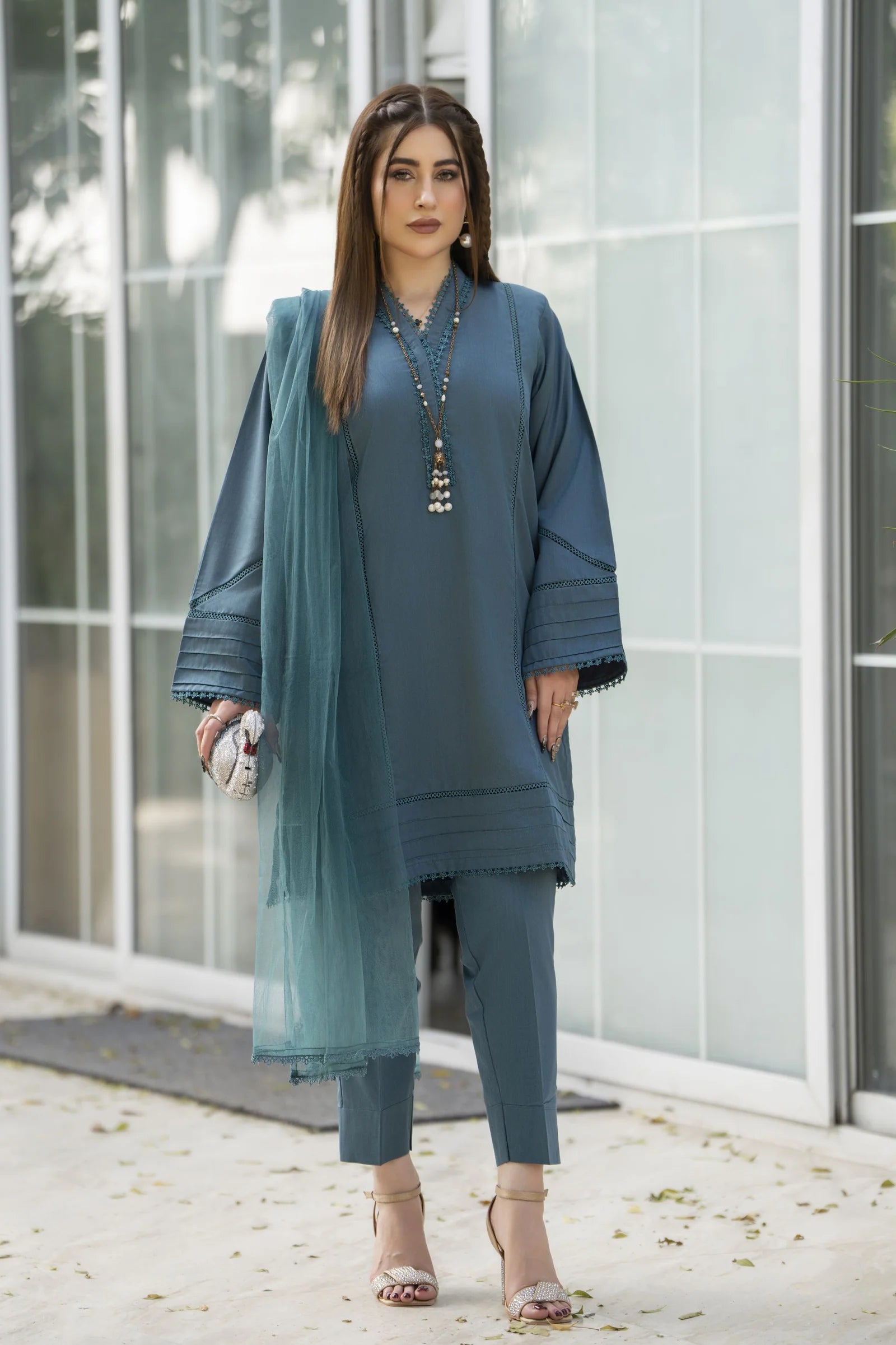 Aabpara Simply Warm Winter Linen 3pc Ready to Wear with Dyed Net Dupatta SWA9
