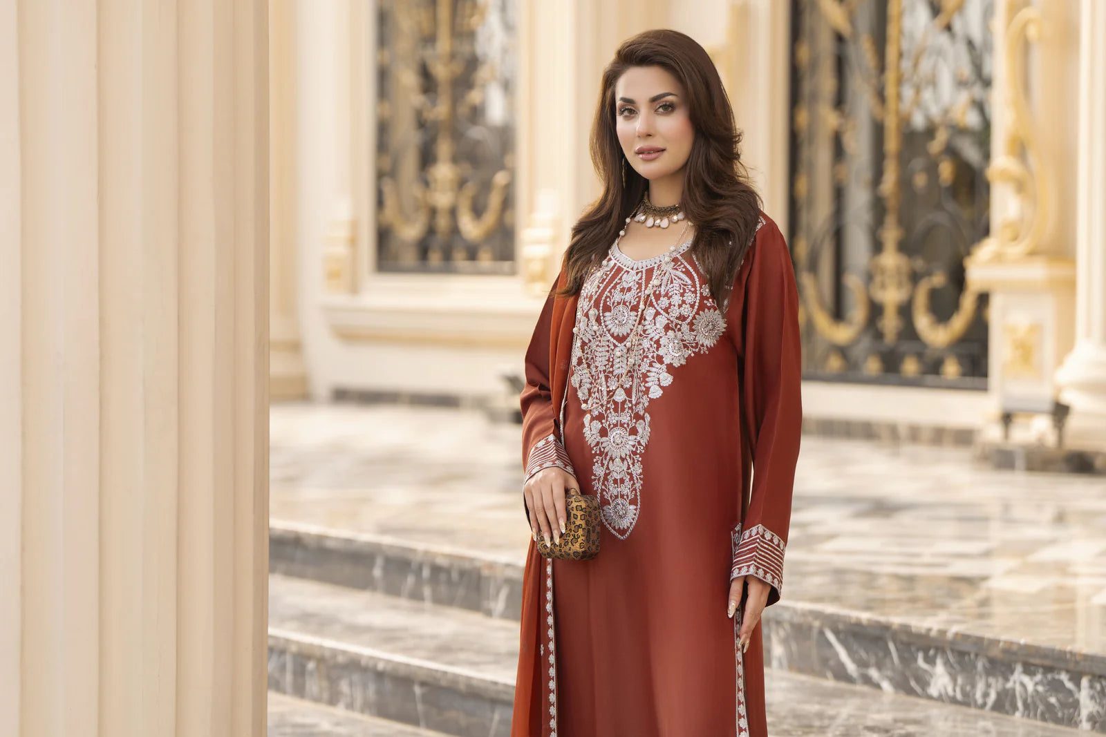 A timeless piece that combines bold colour with elegant detailing, making it a must-have for Eid and special occasions.