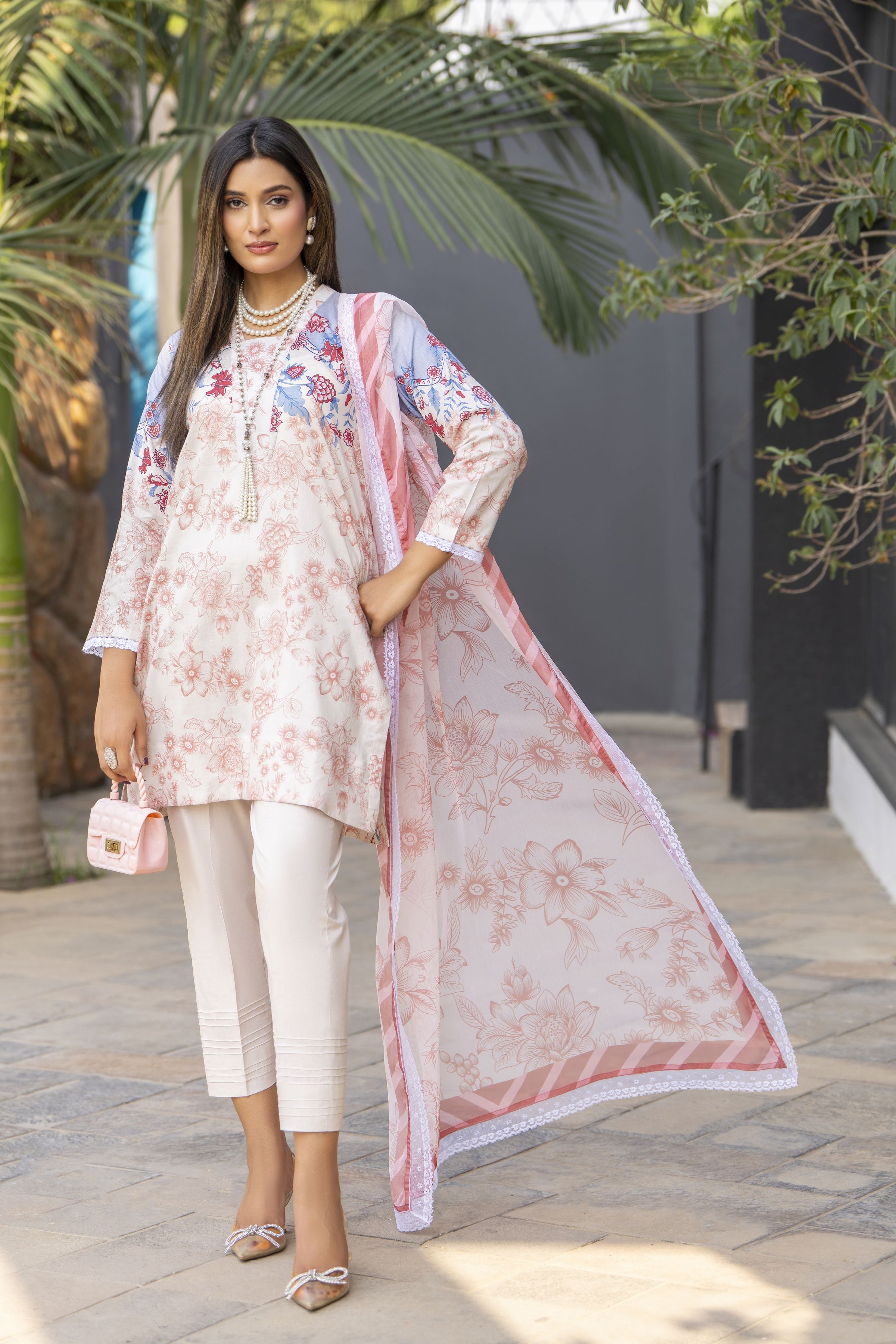3pc Printed Lawn Summer Outfit with Chiffon Dupatta by Dress Code GKJ1