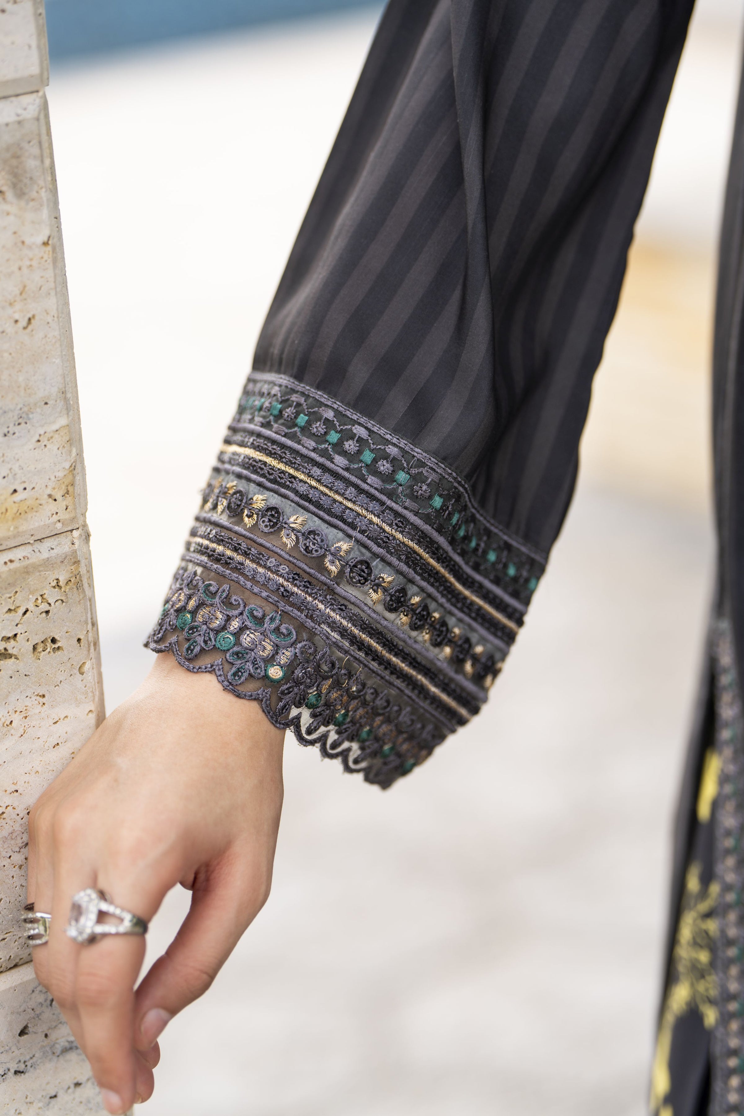 Lush by Aleezay – Charcoal Raw Silk 3pc Short Shirt with Farshi Shalwar Lush7