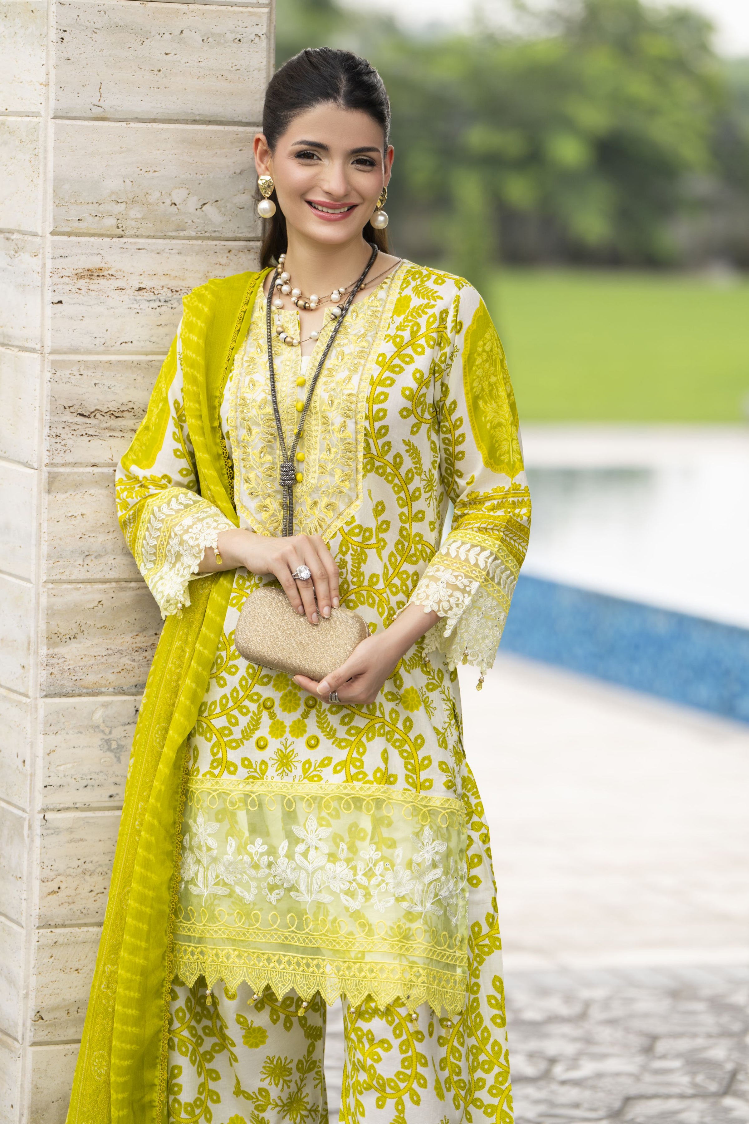 Sakeena Summer Ease – 3pc Yellow Lawn Dress with Farshi Shalwar SSE5
