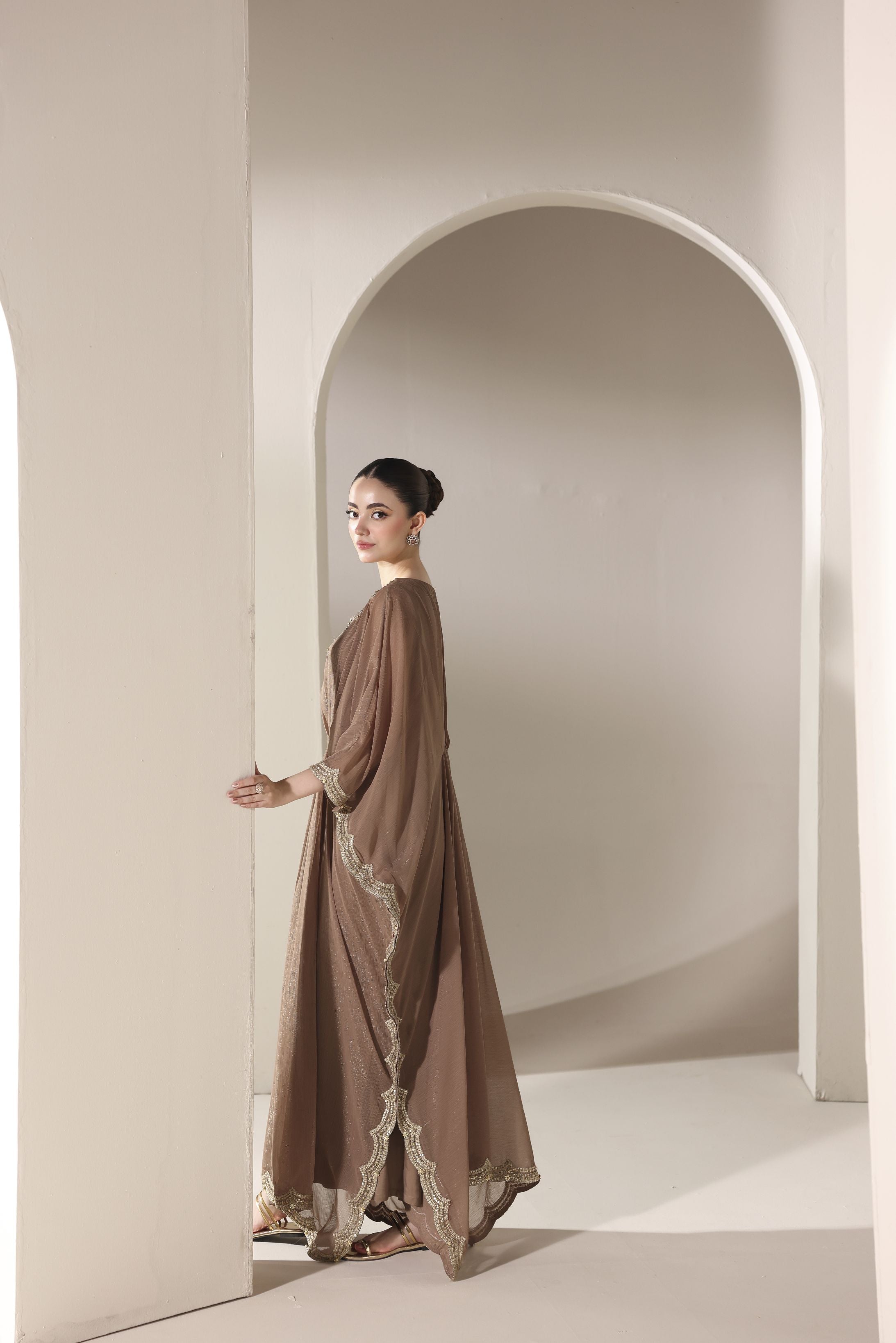 Starstruck by Ain – Mocha Zari Chiffon Embroidered Cape with Crystals SBA6