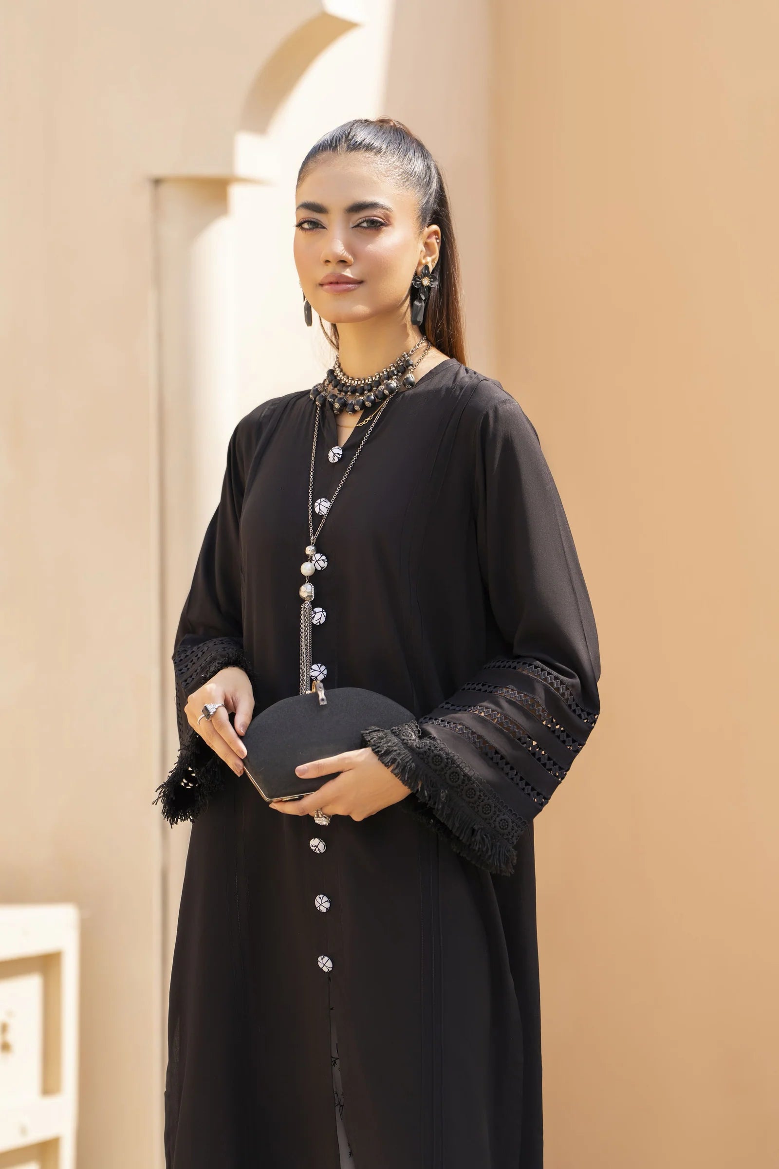 Black Solid and Printed Linen 2pc Ready to Wear Dress by Gul Warun LDG10