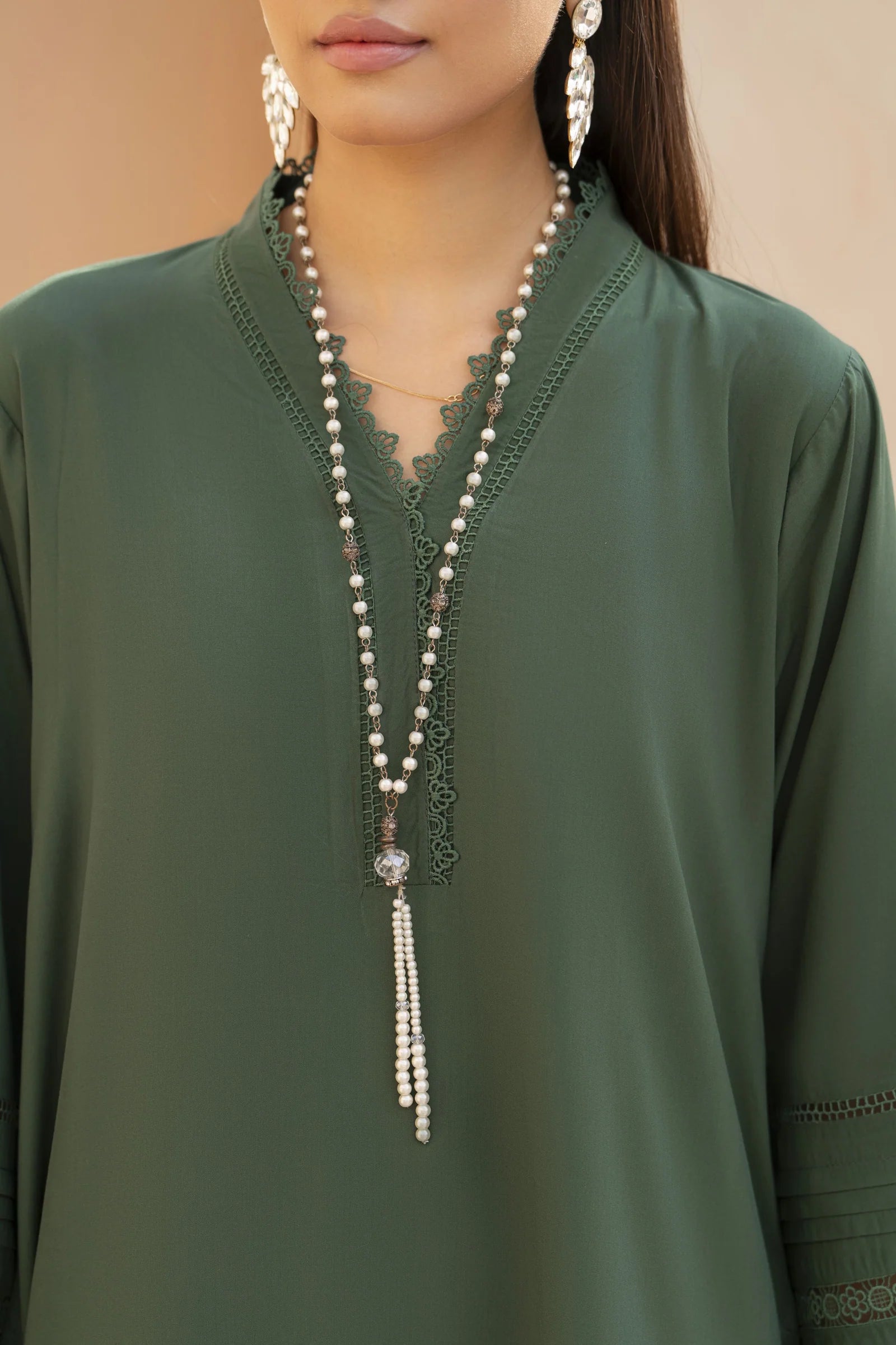 Green Solid and Printed Linen 2pc Ready to Wear Dress by Gul Warun LDG5