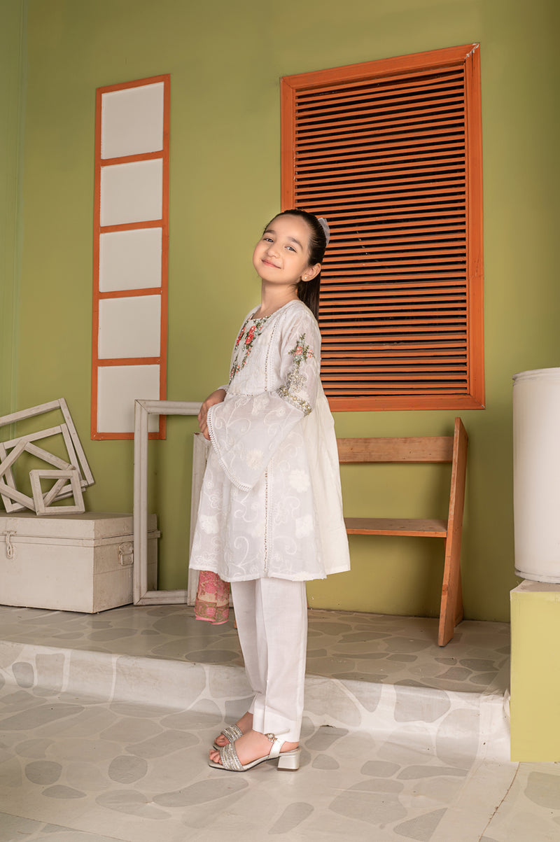 3pc ready to wear chikan cotton embroidered peplum with digital print bordered chiffon dupatta and cotton straight trousers.