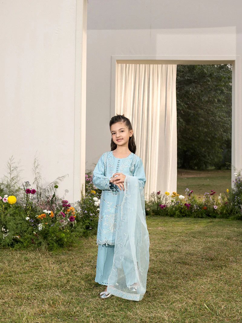 Hania’s Eid Twinning Charm by Mona – Ice Blue Chikankari Jacquard HEC11