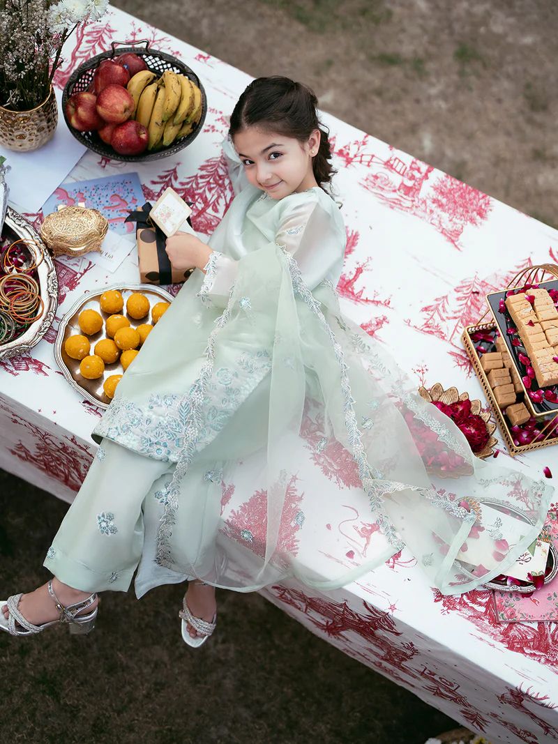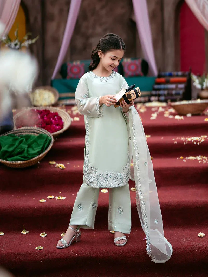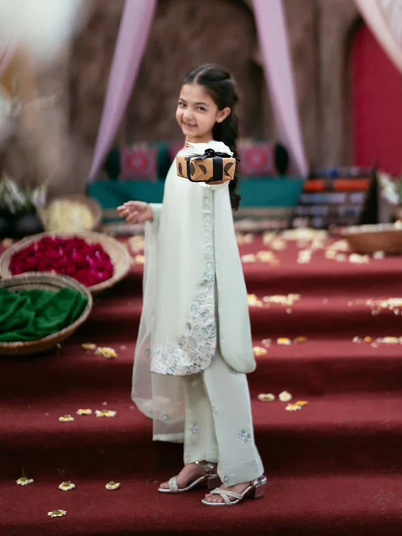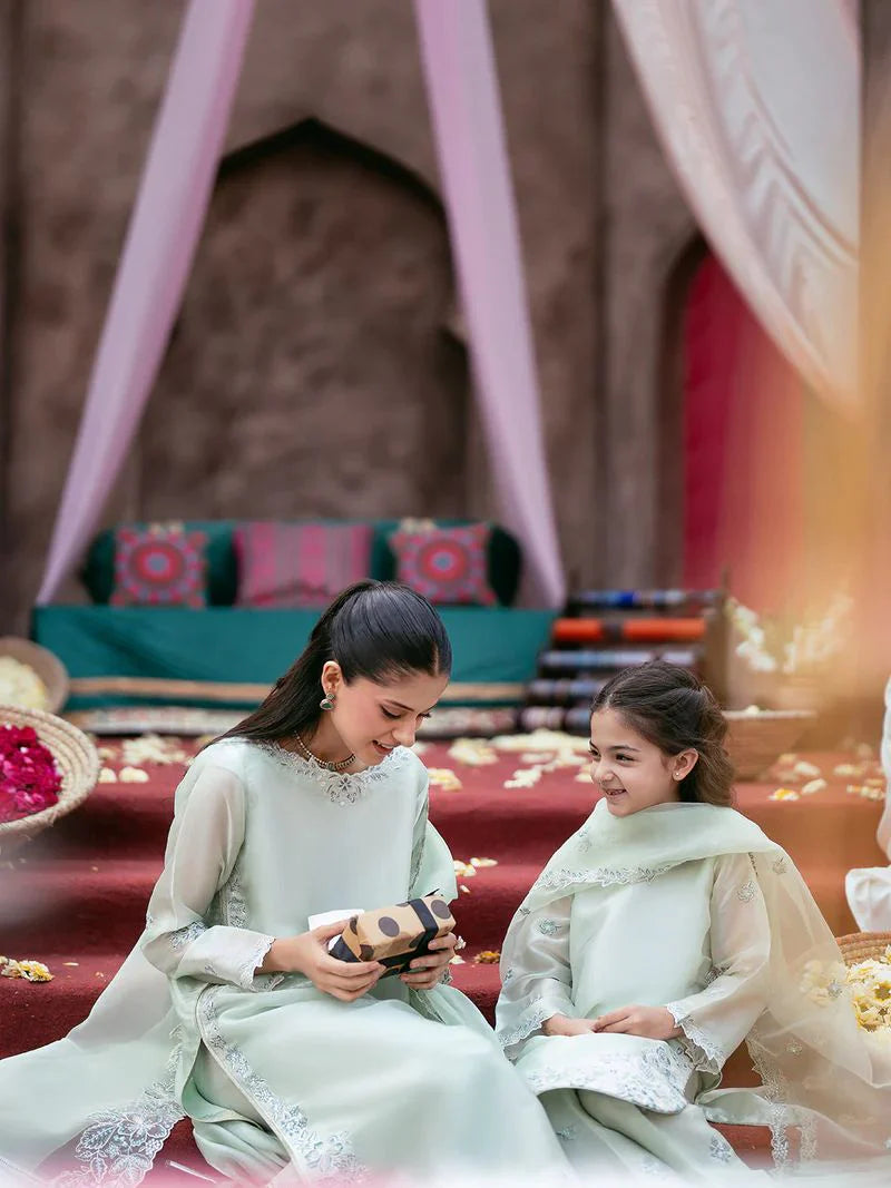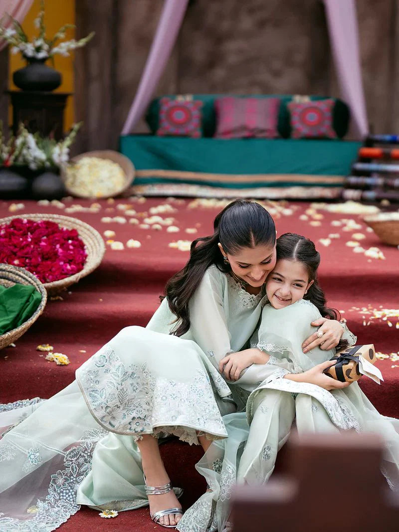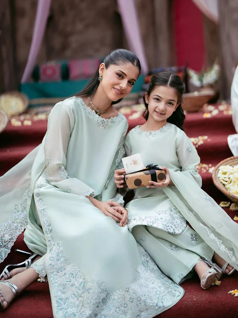Part of the matching mother-daughter collection, this outfit is ideal for Eid, daytime events, and intimate celebrations where elegance speaks louder than excess. Its light colour palette combined with subtle embellishments gives it a timeless and premium appeal.
