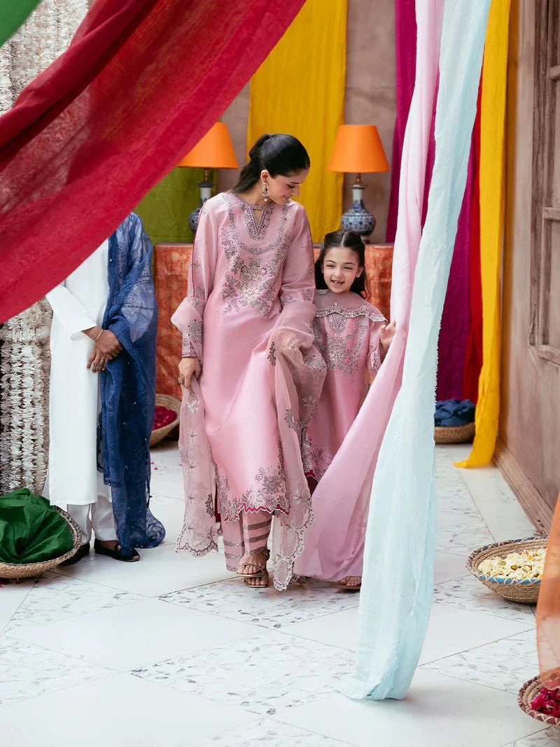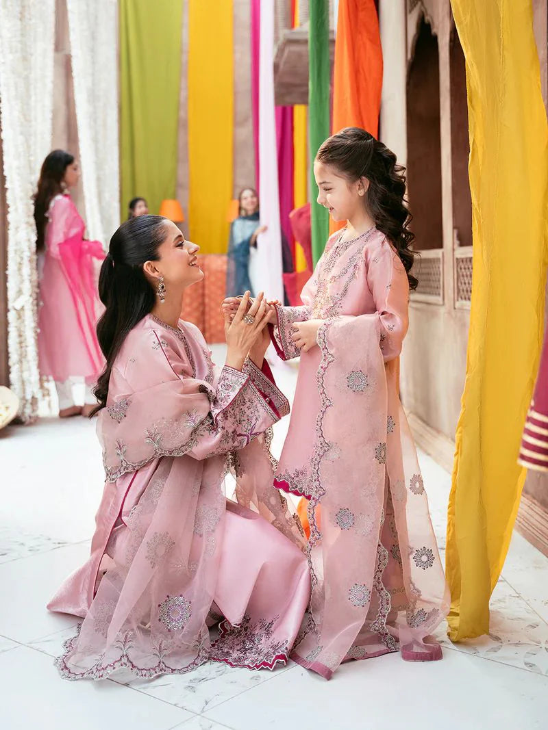 Part of the matching mother-daughter collection, this outfit is ideal for Eid celebrations, festive gatherings, and special occasions where coordinated elegance makes a statement. The combination of soft tones and shimmering details creates a timeless look that feels both premium and versatile.