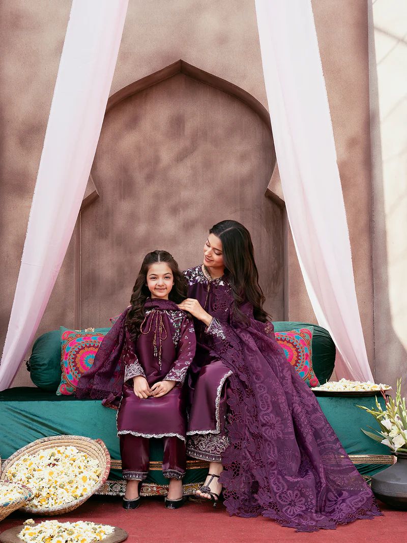 Part of the matching mother-daughter collection, this outfit is perfect for Eid celebrations, evening gatherings, and special occasions where elegance and coordination stand out. The combination of rich colour and detailed craftsmanship gives it a premium, high-end appeal.