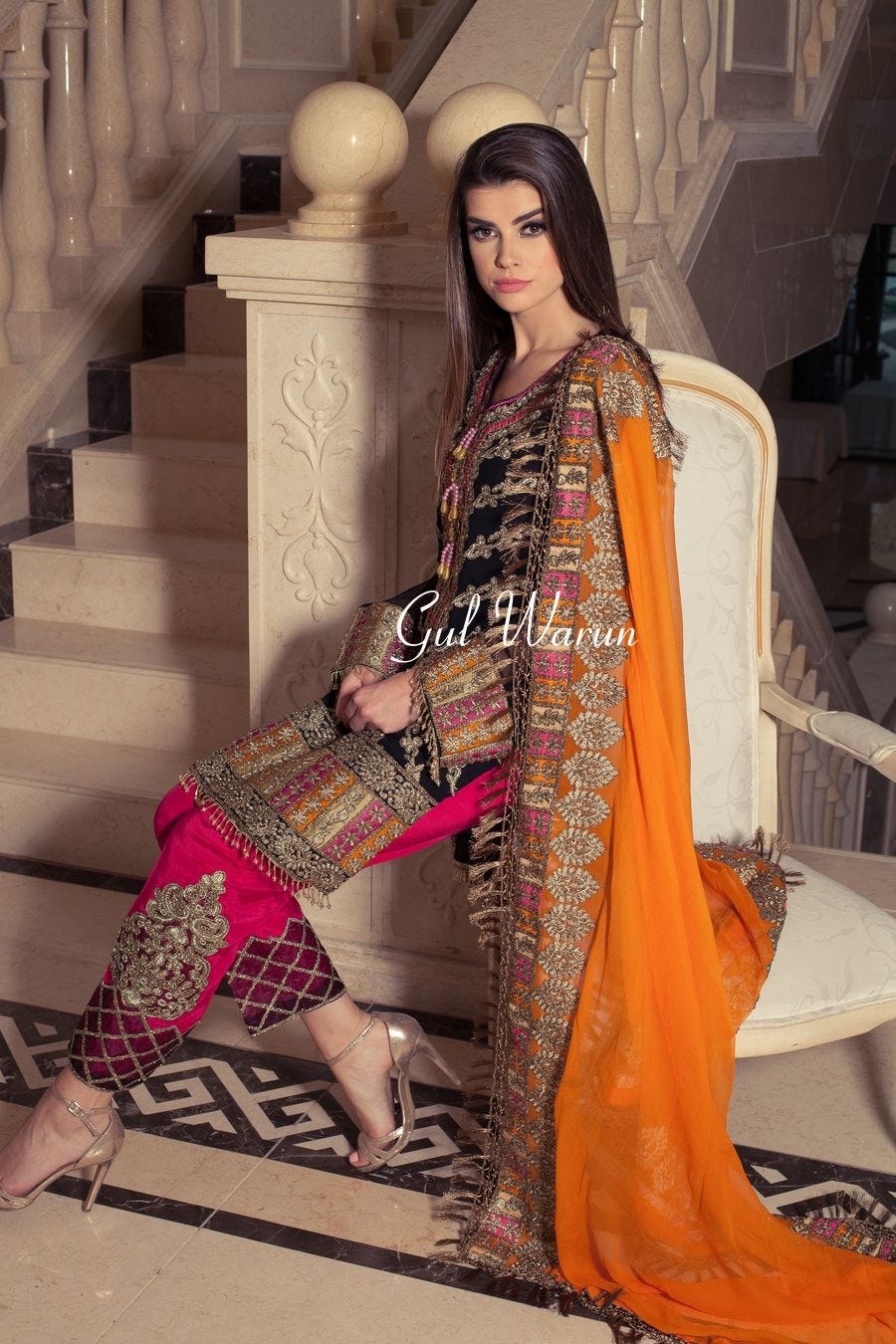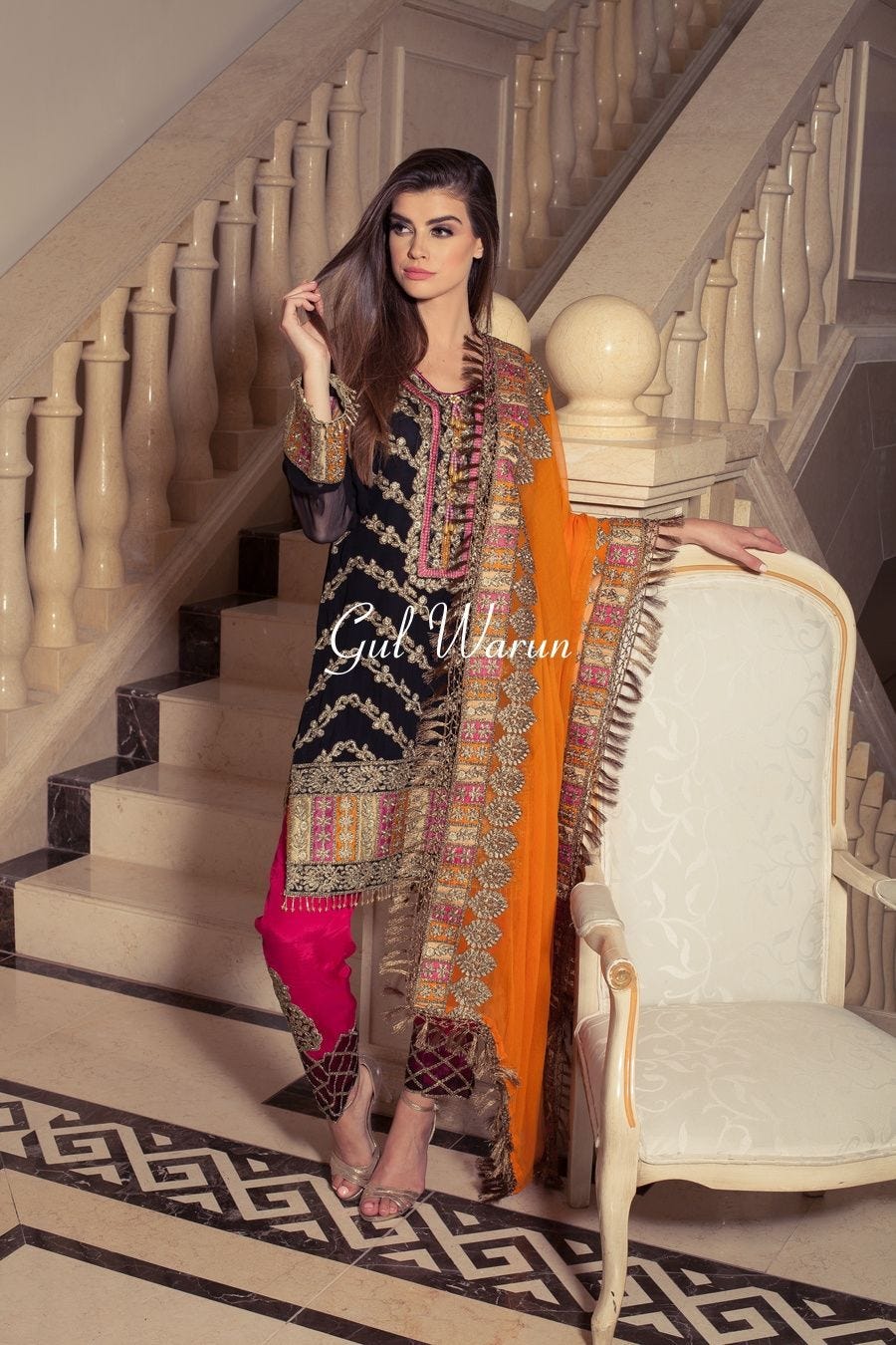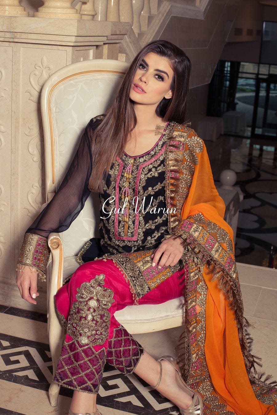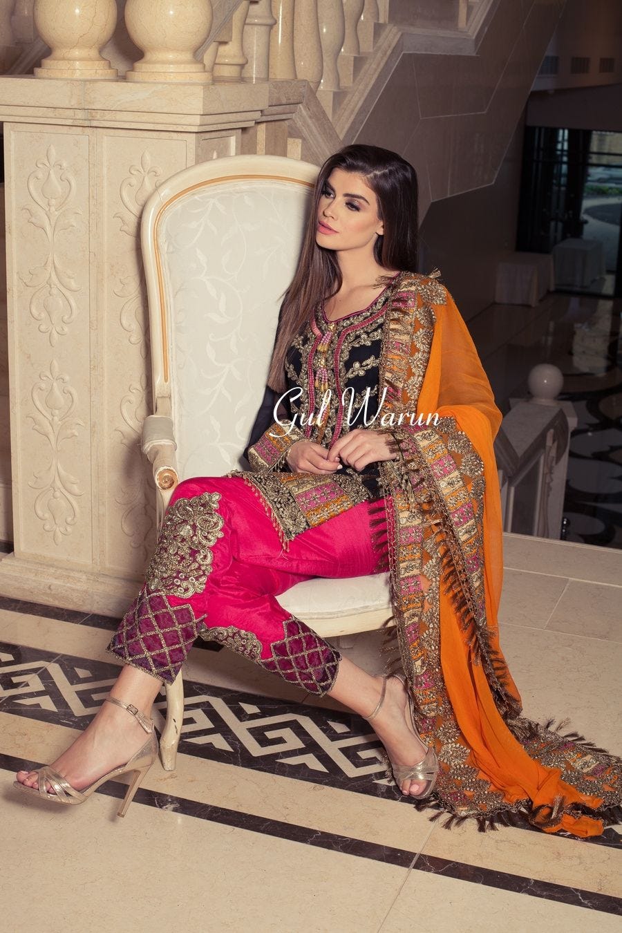 It comes with fully embroidered Chiffon top, bottom and embroidered dopatta