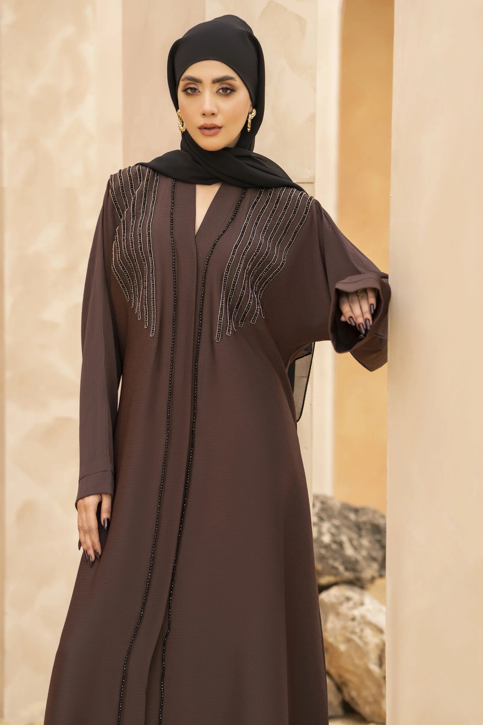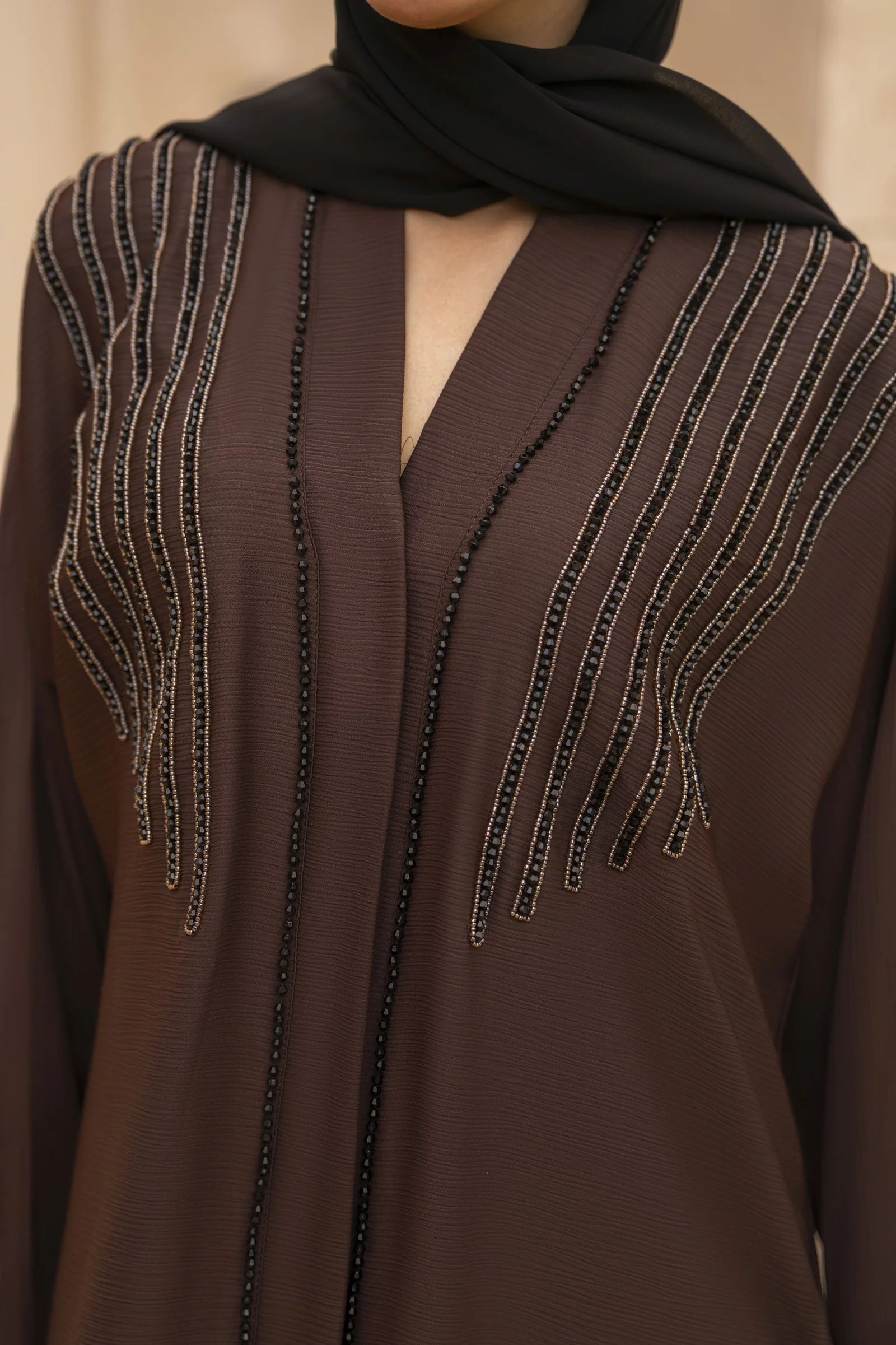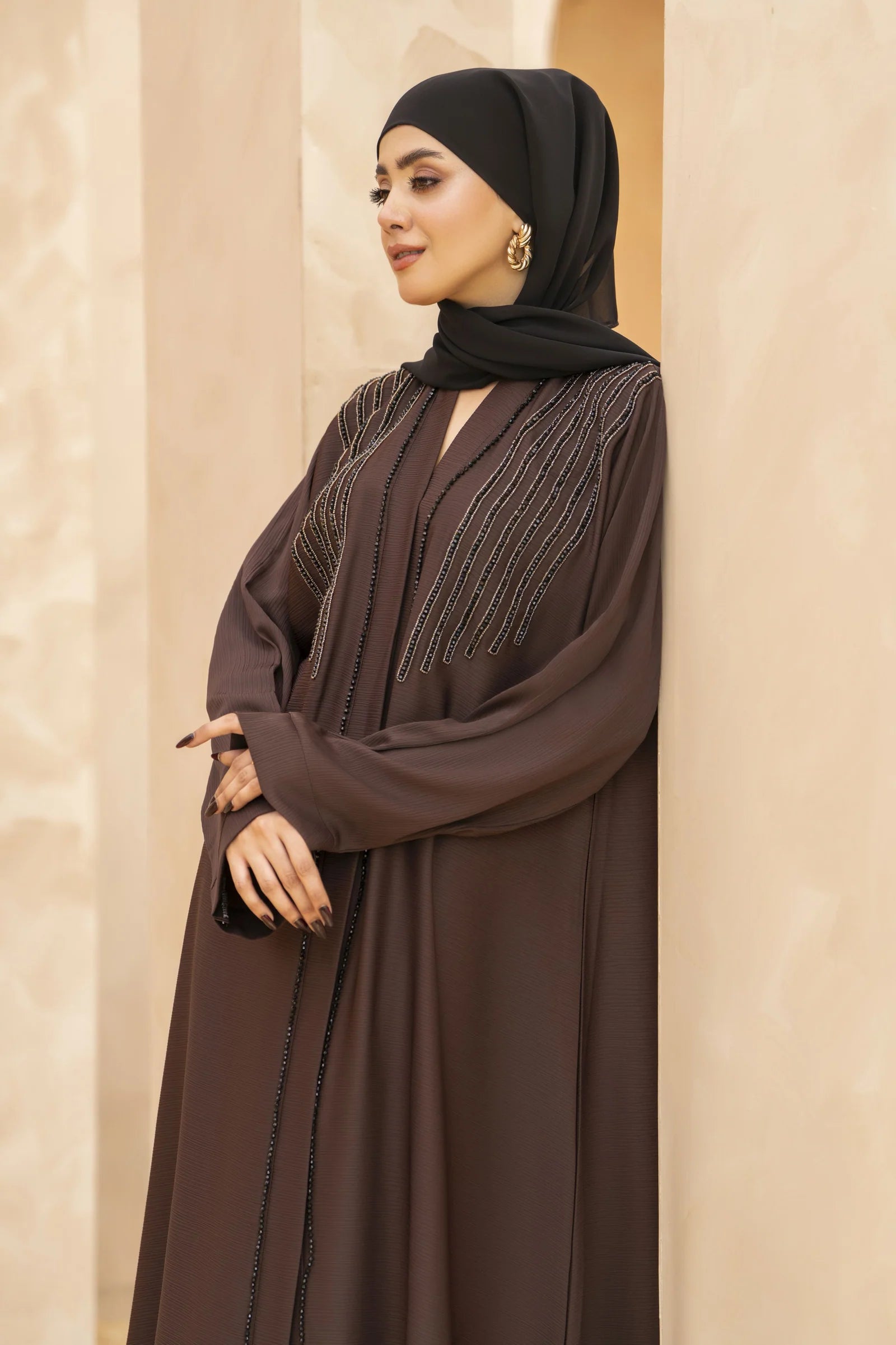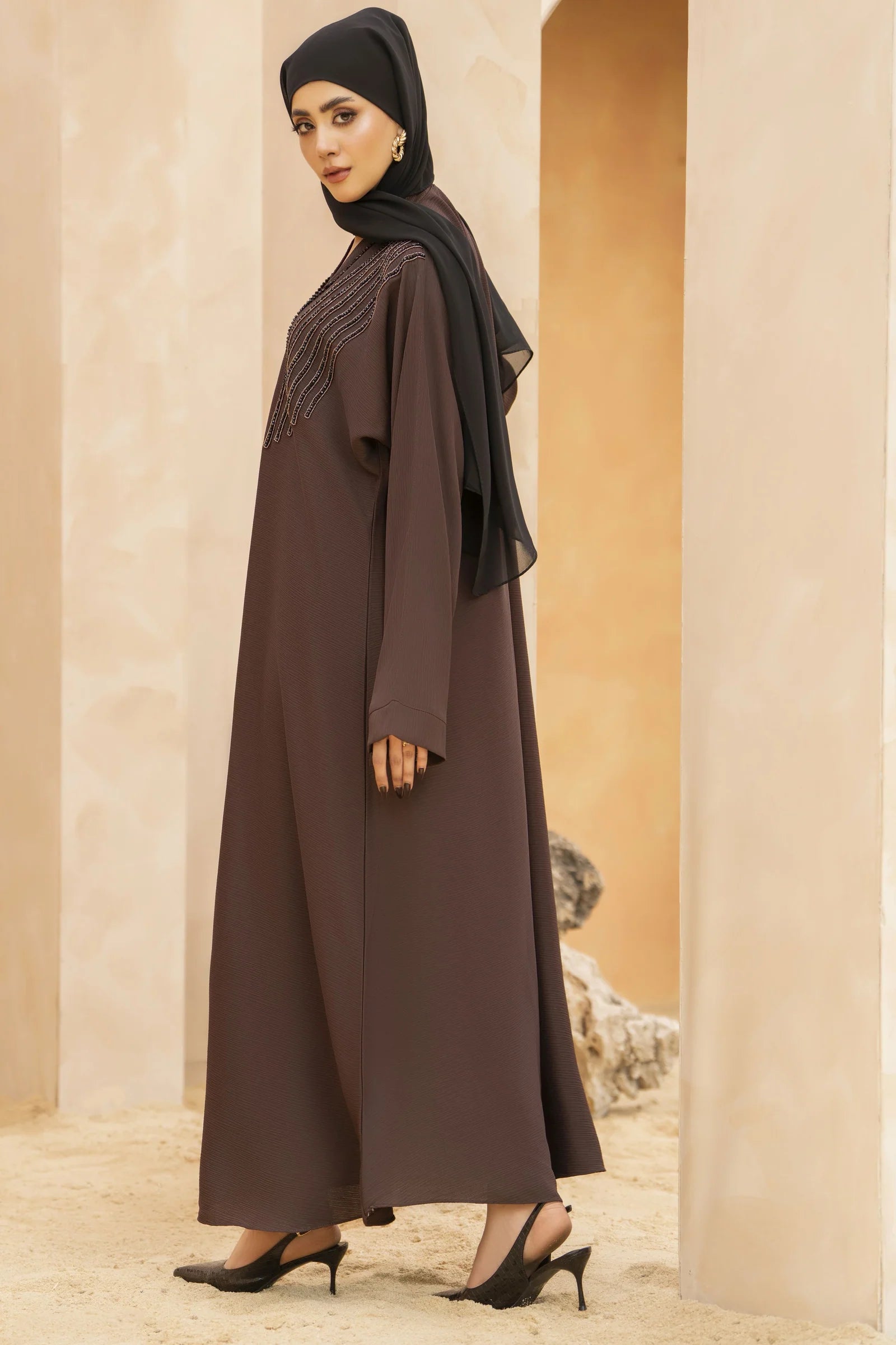 Zaina Veil of Grace – Hand Embellished Cocoa Brown Abaya ZMD7