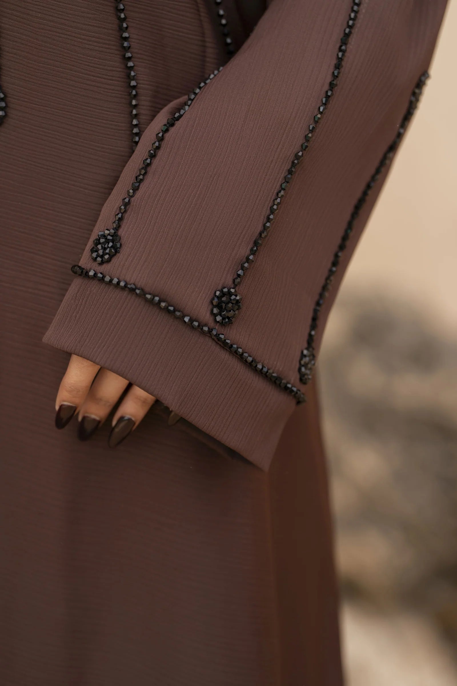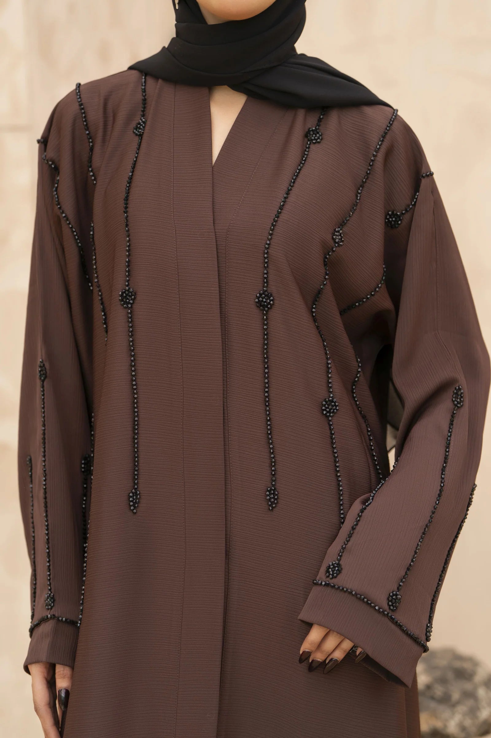 Zaina Veil of Grace – Hand Embellished Mocha Brown Abaya ZMD2